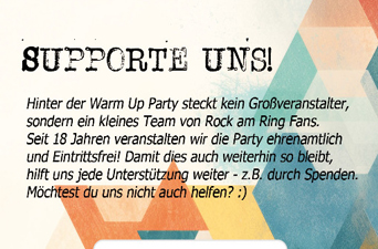 Keine Sorge, auch Volbeat werden 2025 nicht bei der Warm Up Party auftreten. Spaß Beiseite, kommen wir zu einer ernsthaften Änderung in diesem Jahr: die Warm Up Party findet dieses Jahr wieder ausschließlich in der Eventarea des Campingpatz am Nürburgring statt. Wir hoffen, euch 2026 wieder zwei Locations anbieten zu können. Bis dahin geben wir auf der Eventarea umso mehr Vollgas! Schließlich ist das auch unser 18. Geburtstag - endlich volljährig!
